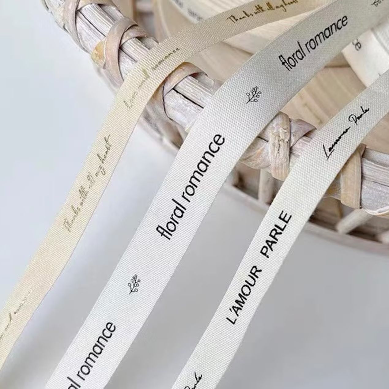 Custom cotton ribbons are natural cotton ribbons by the yard with personalized company logos. Wholesale bulk printed cotton ribbon rolls with printed logos. We are a professional custom logo ribbon supplier and manufacturer. Here, you can create your ribbon with a brand logo for gift wrapping, wedding favors, birthdays, bows and more.Our natural cotton ribbon features a soft, matte and breathable texture with a clean, natural finish. It is gentle to the touch and brings a sense of simplicity, warmth and understated elegance. Custom personalized cotton ribbons are perfect for decorating clothing, gifts, boxes, packaging bags, crafts, home textiles and other creative projects.We offer a wide range of logo techniques for custom cotton ribbons, including 2D flat printing, 3D embossed thick printing, hot-stamped gold / silver logos, and multi-color printing. You can choose any technique to match your needs. Most customers prefer screen-printed logos for their cost-effectiveness.